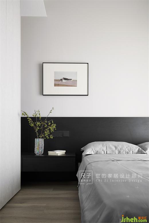 黑白灰干练的配色简洁明了又不失质感,是永不过时的经典搭配,墙上的挂画和小苹果绿植为空间营造温馨舒适的氛围。