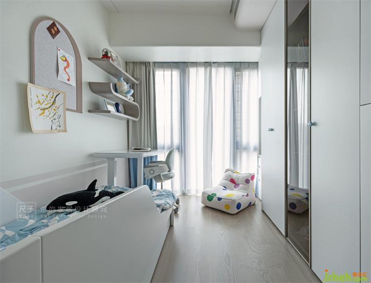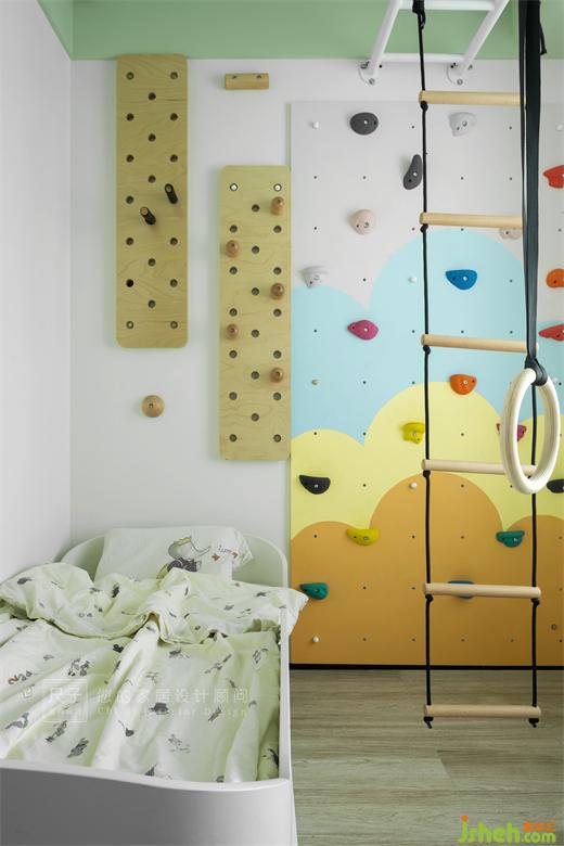 各个空间有各个空间的设计风格,男孩房不仅有睡眠学习区,还有攀岩、攀爬架的设计,满足小男孩好动活泼的性格;女孩房充满仪式感又有宽敞的活动空间。