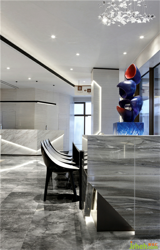 天花与接待台,依然沿续“折”的理念,通过线条折叠,在直线与曲线构成的光影之中,光线在空间中不经意地流转,将时间与空间融为一体。装修公司