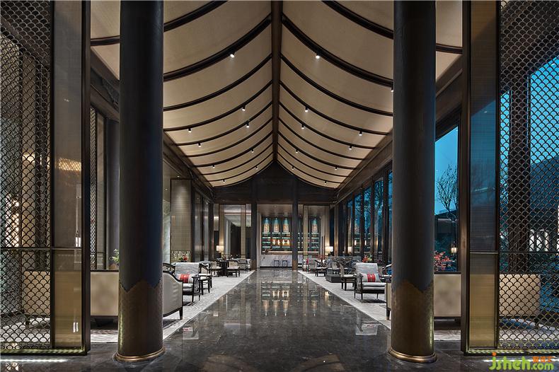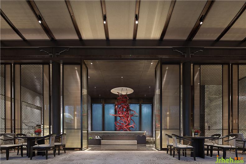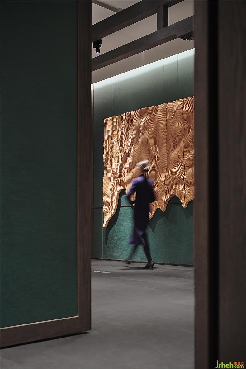 山水之间在于一个“隐”字,楼阁隐于天青烟雨中,虚实隐于秩序变换里,文化的传承则隐匿于每一处,将空间作为时间的表达载体,赋予每件器物独特的语言,譬如银杏花叶的灯,朱红色的果,纹理错落有致的房梁....在细节中窥见历史真相,此情此景仿佛在千百年前的平行时空真实存在。