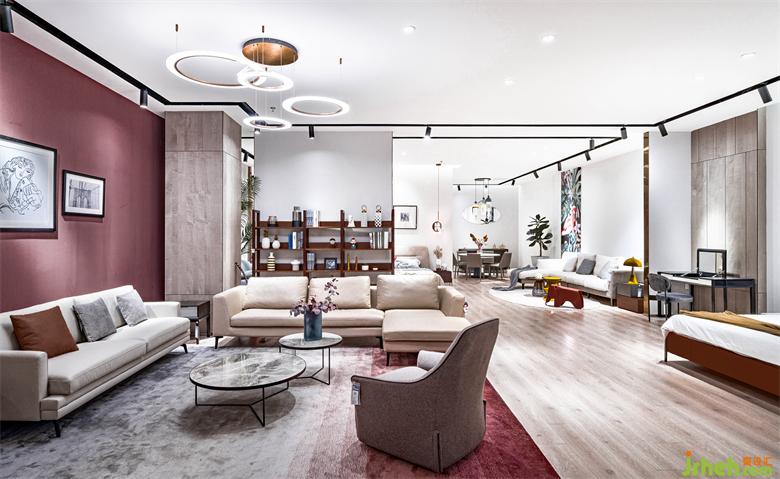 家具展厅设计项目座落周遭是一片绿带景观自然区域与商业行为密集处,城市街景与绿带的冲突化,让整个街廓显得凌乱彼此格格不入,对此对这块土地的尊重以及降低视觉压迫冲突,适度让外墙与林带做一些对话,建筑外观选用透光砖与清水砖做虚实之间的变化,材质本身反映出自然原生态的感官效益,有如飘落的树叶,光线的折射就好像五颜六色的花瓣,从入口天花吊架投影下的光晕引导,让视觉多了延展的作用,主题墙边多了一些与邻里间互动的停驻空间,让销售行为弱化,让人与人之间的情感连结更为友善,硕多大大小小不一的荷叶造型,述说着自然场域的故事,试图与场内的北欧家具纯粹自然产生一些连结,在动线采用手法则是点(物件)转辐射(磁场),并透过参数化分析提取造型视觉可视面的分析结果。