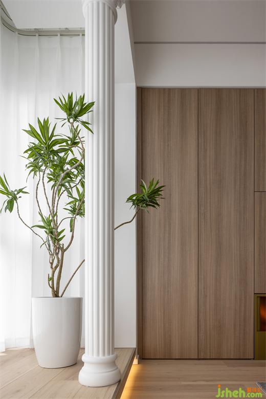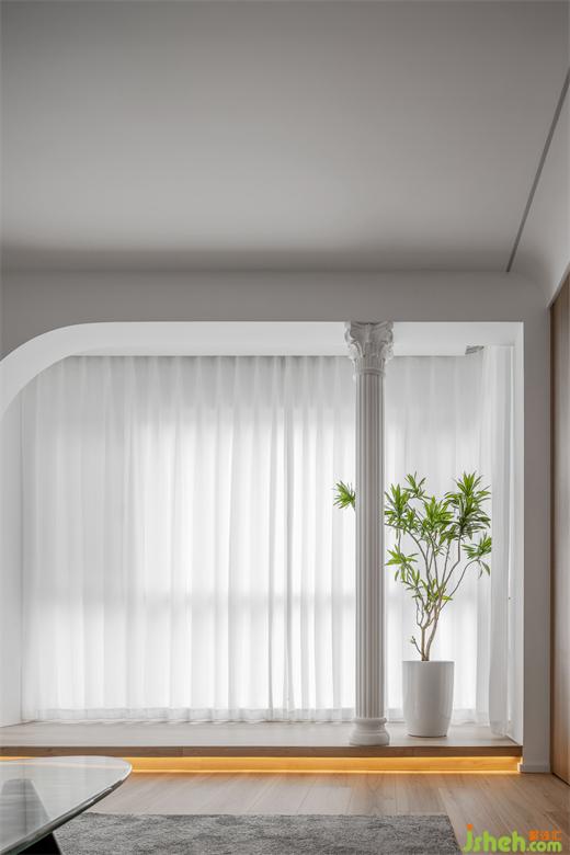 独立的阳台辟出一方静谧天地,透过纱质窗帘,光影斑斓,迎接满屋的惬意阳光,一株绿植为此处注入勃勃生机,呈现出家与自然的巧妙融合。