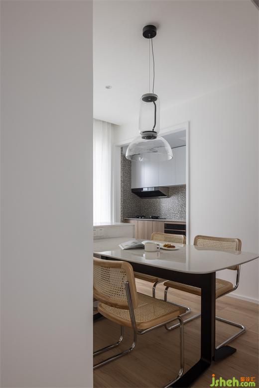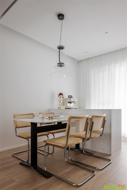 餐厅与客厅相连,天津天霖园装修设计在色彩和材料的使用上保持了空间的连贯性,开放式的设计让有限的空间呈现出更为宽阔的视觉效果。