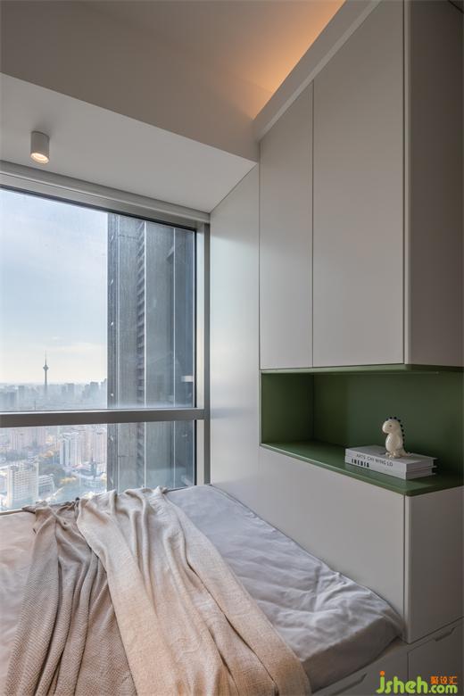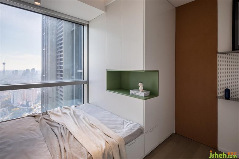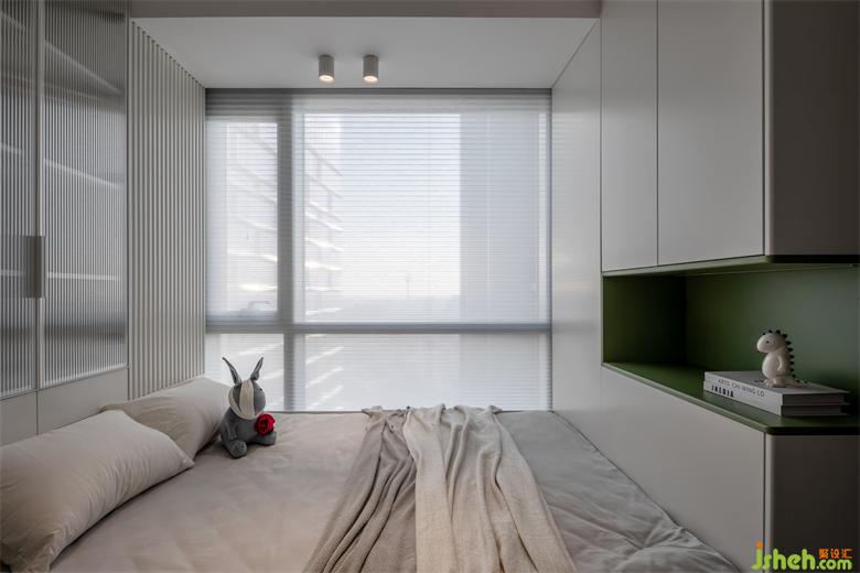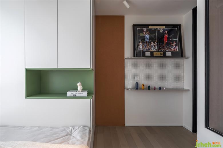 奶白色调给人一种冷静、内敛,它会让你感受到空间的宁静和平和!卧室墙面增添清新绿收纳,营造一种清新、淡雅的氛围。