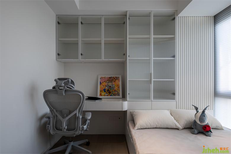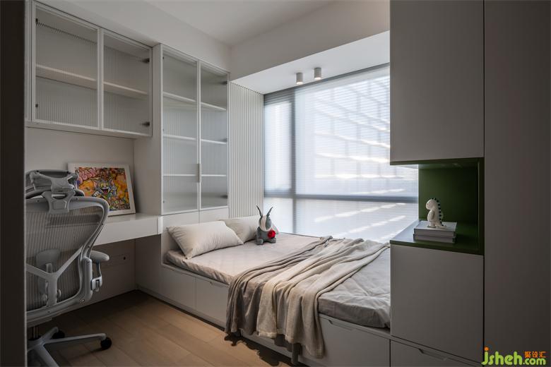 次卧——集休息与学习于一体,独属于孩子的安静空间。天津和平翰林公馆装修设计搭配柔和色调的床品等软装布置,营造出舒适安逸的氛围。超大独立储物柜,方便收纳,不显凌乱~