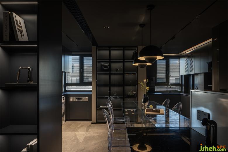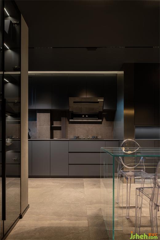 通过对场域属性的深度挖掘,厨房也被赋予了深邃与流动并存的设计蕴涵。明灭光影的虚实互映、空间尺度的精准把握,融府装修设计让烹饪、交流、聚集的实质需求得到满足,同时也暗示着多维的场景叙事可能