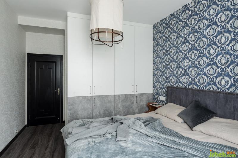老人房的背景花墙纸延续布布贯彻的宗旨,只是选择上还是更偏向沉稳一点的花型,带一点水彩的晕染感觉,靛蓝色+灰+白是整个大空间色调,有一种沉静的诗意。