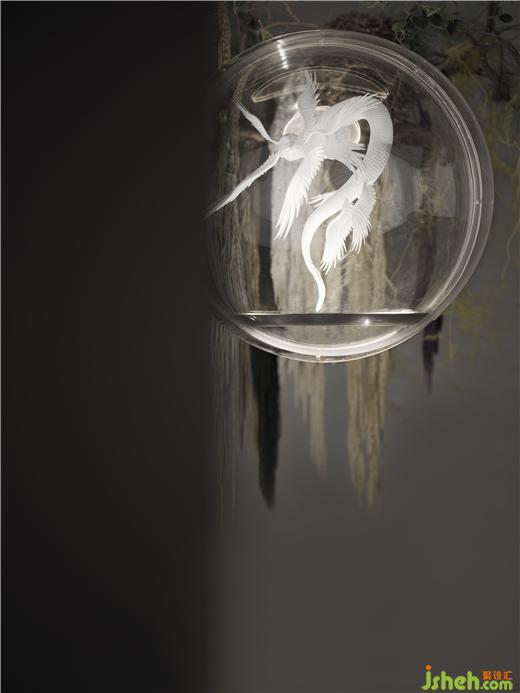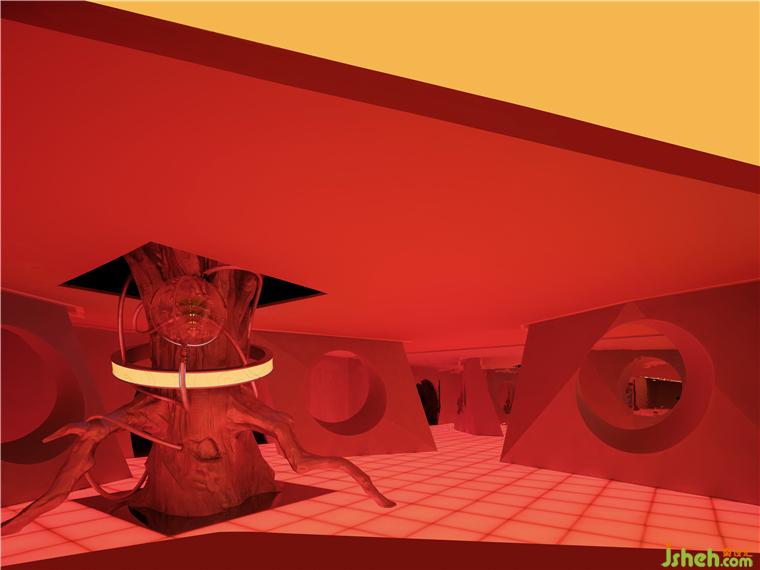 树干破白墙而出,反映了形而上的空间美学,与遗憾之树构成诗意的联结。美术馆设计白色通顶LED墙体印着沙丘之形,与苔藓、座椅遥相呼应。