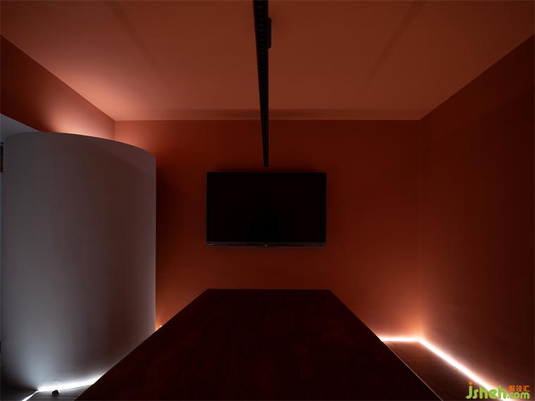 整体上利用体块之间的穿插关系,形成如中式园林一般的曲径通幽、移步换景般的空间格局。办公室设计原本结构留下的12根钢构柱子巧妙的消隐在设计师精心规划的功能分区之下。