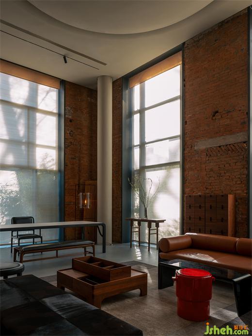 The initial seriousness is broken by the "peek" and "niche" between transmitting and receiving above the entry screen wall. The design’s fun unintentionally disclosed "niche" is ready to be recognized. The switch for altering the ambiance in the workplace area is also by the lighting. The Forbidden City's orange lights shine on the gray brick floor as office workers leave during the day, giving the area a distinctive Eastern look and shadows.