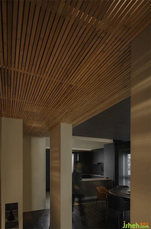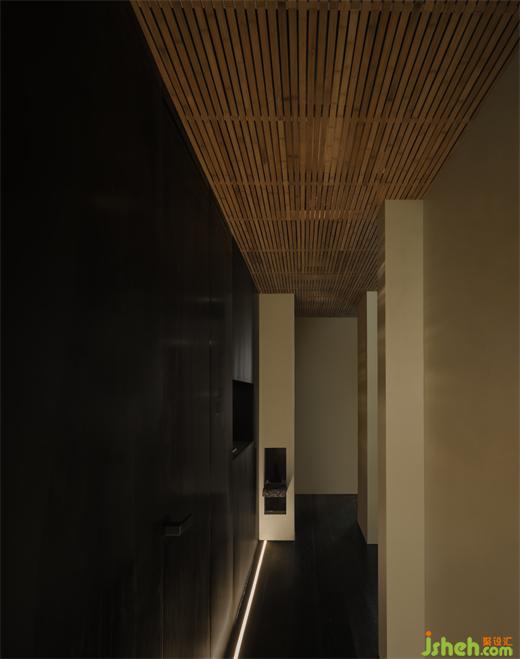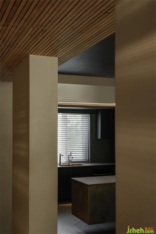 别墅设计空间中也多次贯穿了对自然肌理的花岗岩在柜体中作为面板和层板的运用,与空间中的保留时间痕迹的老木板形成了对仗的关系,也为空间增添了一丝古朴的韵味。