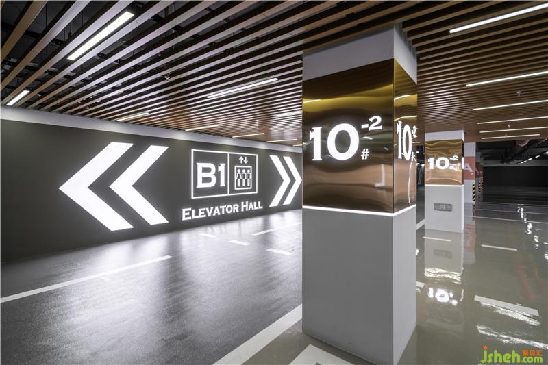 In the lighting design of the garage, in addition, to meet the lighting needs, we chose strong luminous words and arrows, which can be used as a guide while contrasting with the darker garage space. The owner is the entrance of the carriage hall where there is luminous guidance.