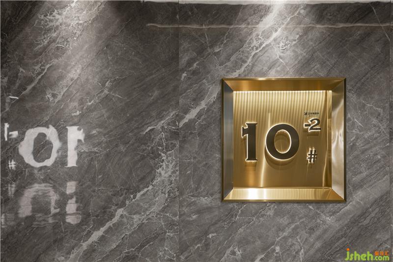 ▼深灰色石材嵌入的金色不锈钢 Golden stainless steel embedded in dark gray stone