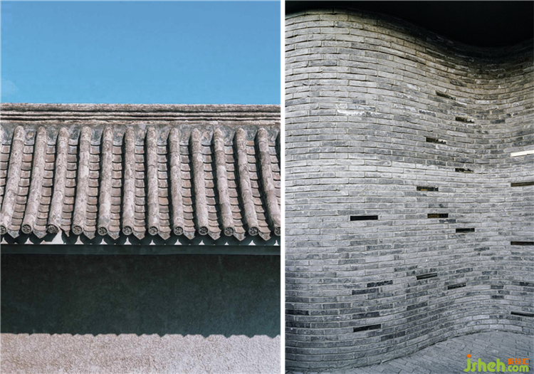 ▼立面曲面弧线延伸胡同建筑屋顶的曲线, The curved surface of the facade extends the curve of the roof of the hutong building