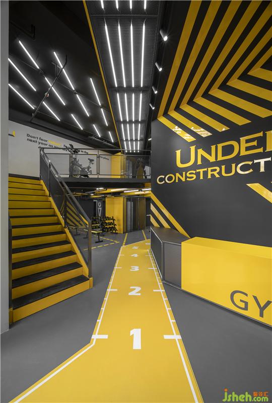 UNDER CONSTRUCTION gym needs to continue its design style of "unfinished construction site". It is different from the previous design techniques of exposed concrete, I-beam, and other structural components. In the design of this gym, DAGA Architects uses an exaggerated "yellow warning" to reflect the visual effect of the construction site.