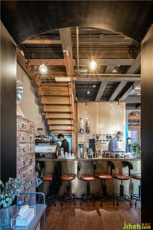 改造前的建筑是一栋传统的青砖建筑,内部的木质楼梯已经楼板已经因年久失修而失去了使用功能。改造时,我们希望能够尽可能的保留建筑原本的材质与肌理,让新的新,旧的旧,从而产生一种新旧对比,这种具有冲击性的对比能够让空间激起使用者与空间历史的对话的咖啡厅装修设计。