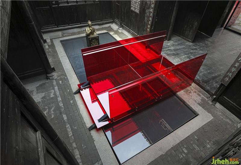 红色在东方文化里,寓义深厚,它代表平安、喜庆、福禄、康寿、热烈、兴旺。对中国人来说,红色是“国色”,更是中国人的一种文化图腾和精神皈依。红色玻璃盒子的加入,亦代表传承与创新,新旧共存,自然融合。以红色透明玻璃盒子为点缀,置入原有建筑,打破了封闭隔阂的同时又给不同属性的空间带来更多的可能性