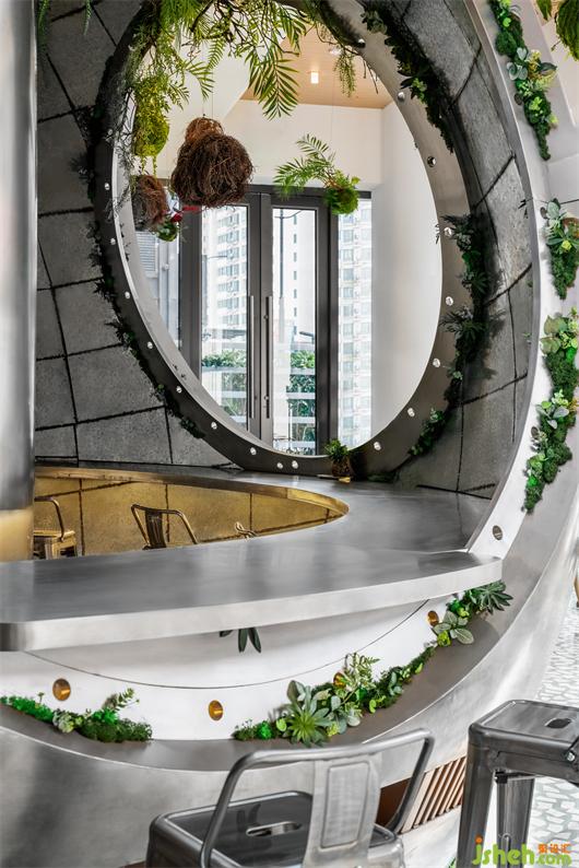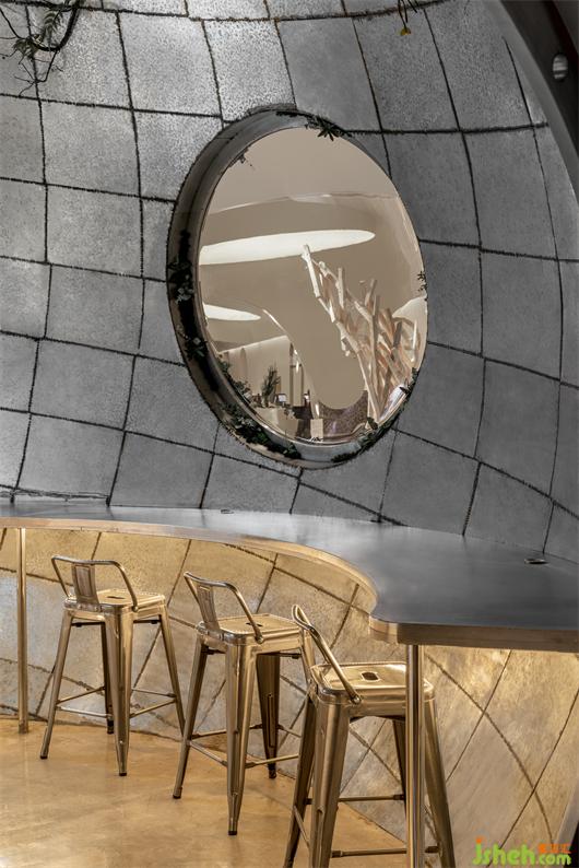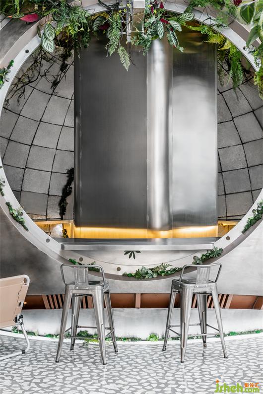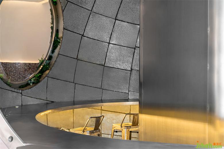 到访的顾客可以坐在舱体内部和外部就坐,看着外面的景色,仿佛驾驶着宇宙飞船在太空中遨游。咖啡制造局设计沉浸式的太空咖啡之旅,将氛围感提升到极致。露营元素提升了沉浸式用餐的体验感。金属材质的木箱和低矮的座椅,让使用者离地表更近了一步,仿佛坐在火星的表面,闪烁的银河系一览无余。