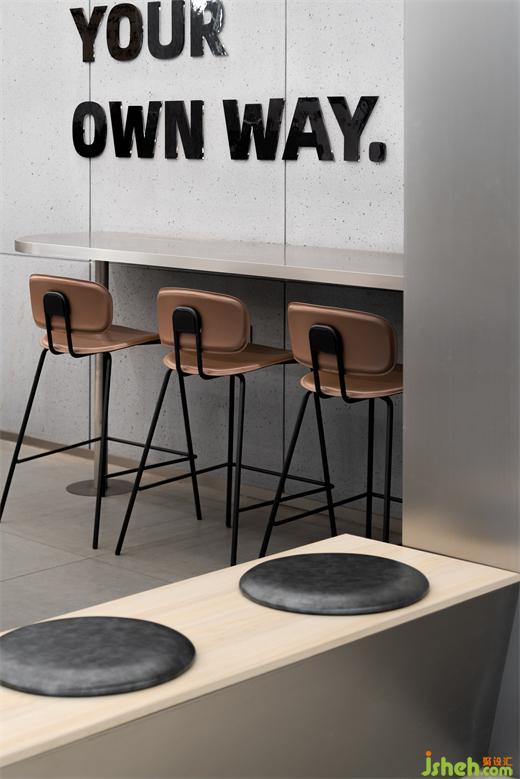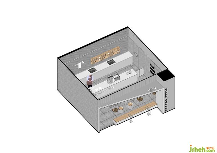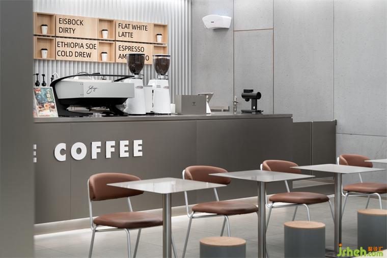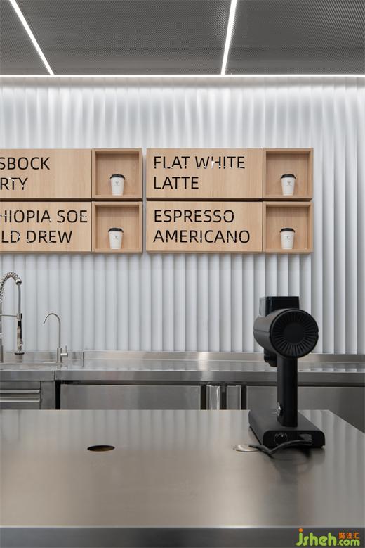 l 咖啡吧台设计延续Ticle传统的风格,吧台背景墙上做了一点突破,加入木饰面元素,即丰富了设计细节又平衡了与整体空间色调。