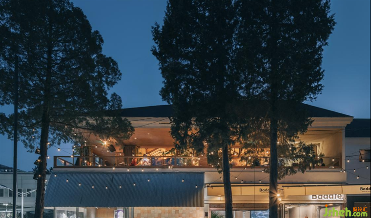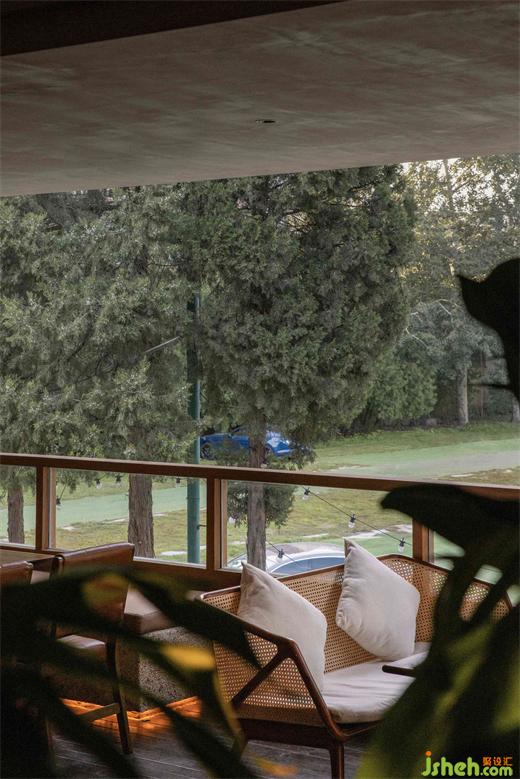 三面露天开窗引入自然天光作为空间的主线,一进门左手面对西西里村,是露天开放式室外就餐区,打开房顶的遮拦掩盖,露台一半为三座形态不同的围合上升式卡座,绿植环绕,一半放空,开拓空间,备餐台位于隔断区中央,绿植根据视线划分层次,减少外部直接干扰,上升式卡座式划分人群区域,但都可以欣赏到周围的景色和西西里村度假“海景”,推开折窗,内外相融,折叠门外落座区外是大片绿茵,相较其他区域更为宁静,酒吧餐厅设计在不影响结构功能的情况下,最大化开窗,使人在室内能感到与室外自然的交流;面对公路一侧就餐区,借助窗户的格栅,让自然光渗透进内部。