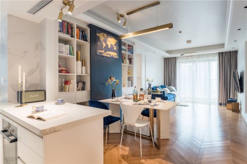 1:餐厅的墙往餐厅方向移,隔出来“T”字型走道,两面墙凹陷处一边放冰箱一边放洗手台,客卫进行干湿分区。