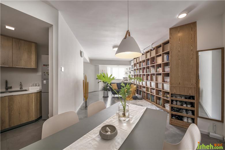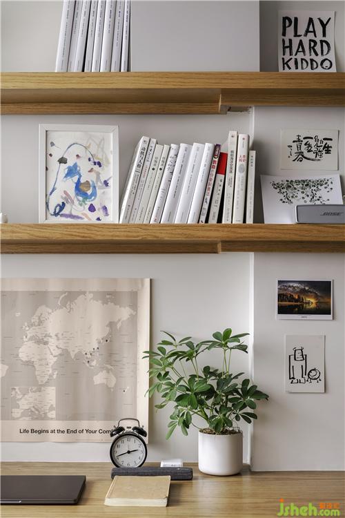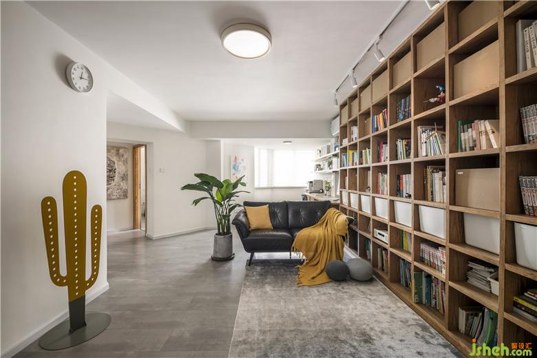 2.打开原来电视背景墙的墙面,把通道功能弱化,扩大客厅的空间感。将原来的生活阳台包进客厅,改造成书房,加强空间的延展性。