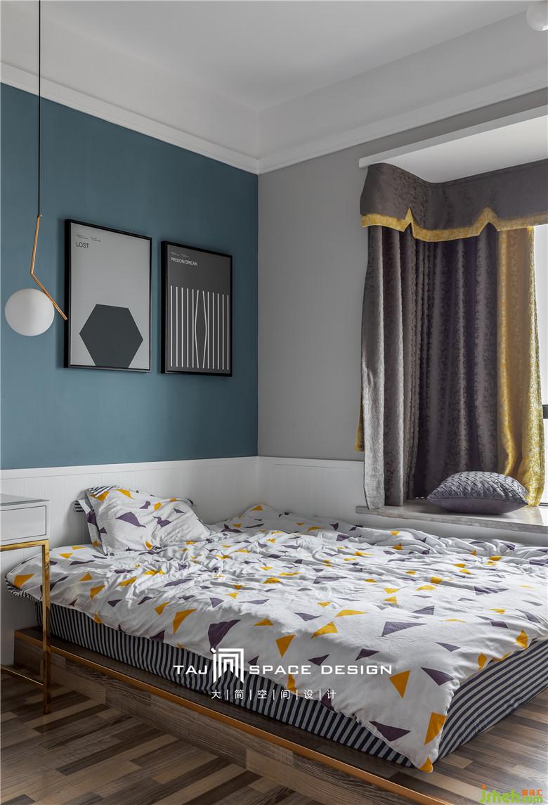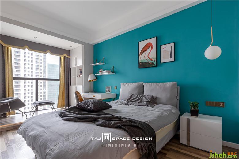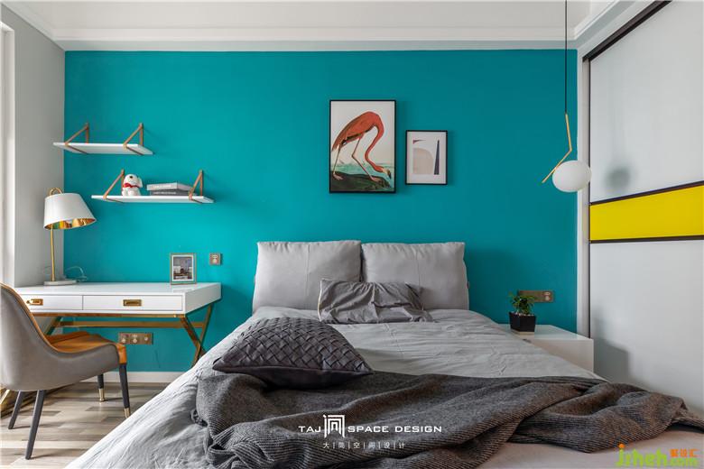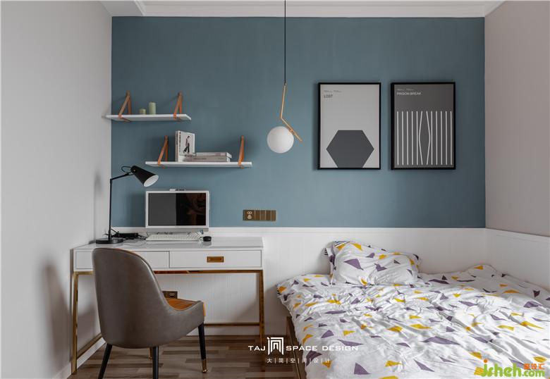 男孩房采用蓝绿色点亮空间,体现了孩童活泼个性的特质,饰品的点缀穿插为环境增添几分玩味。