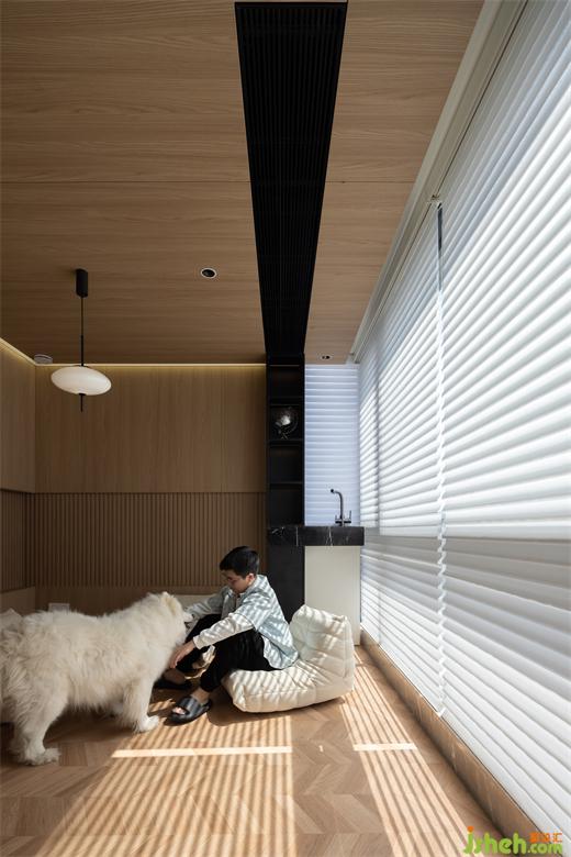休闲室是一个完全独立的私享空间,一体设计使得空间井然有序,沉稳的木色在光影下平添流动的视觉美感,构建变幻的感知氛围,享受悠然温馨的时光,乐不可言。