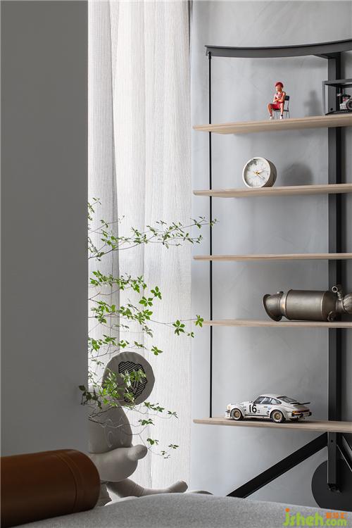 吧台、沙发、层架及隔断隐性地划分出空间的段落,不同功能区域既彼此独立,又有着贯通的流动感。