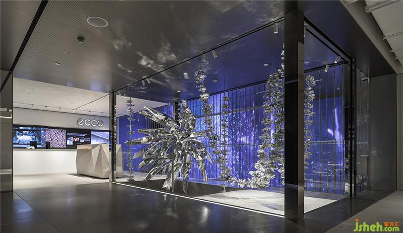 ECCO爱步,一个来自丹麦的鞋履及皮具品牌,将「使行走成为一种乐趣」作为设计宗旨。与以往低调柔和的品牌印象不同,这家淮海路全球旗舰店是ECCO品牌形象升级的突破口,设计师党明在设计中融入浓烈未来感,运用独特的艺术装置,力图把技术、舒适、创新的理念传递给世界。