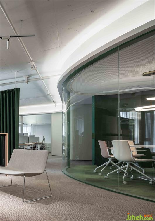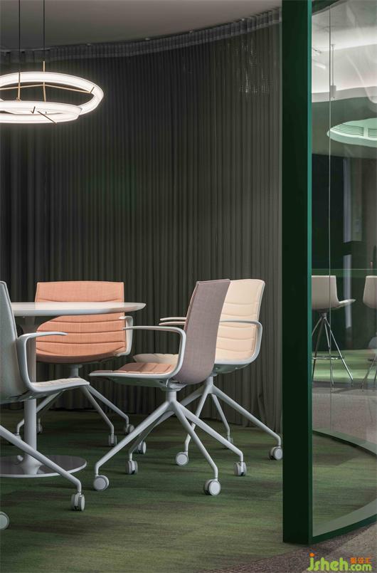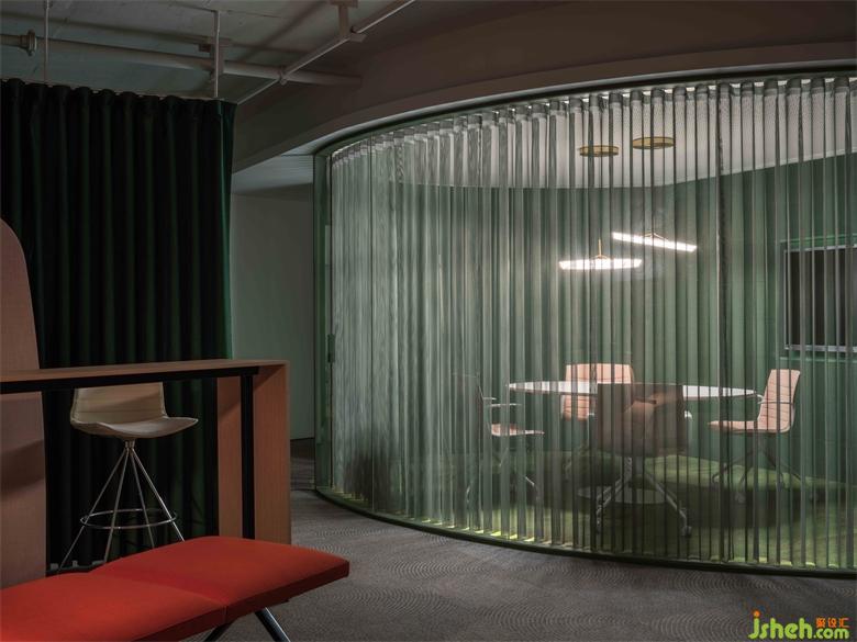 会议室造型好似一个虫茧,孕育着一个个思想,通过激烈的挣扎、碰撞,破茧,最终羽化成蝶。