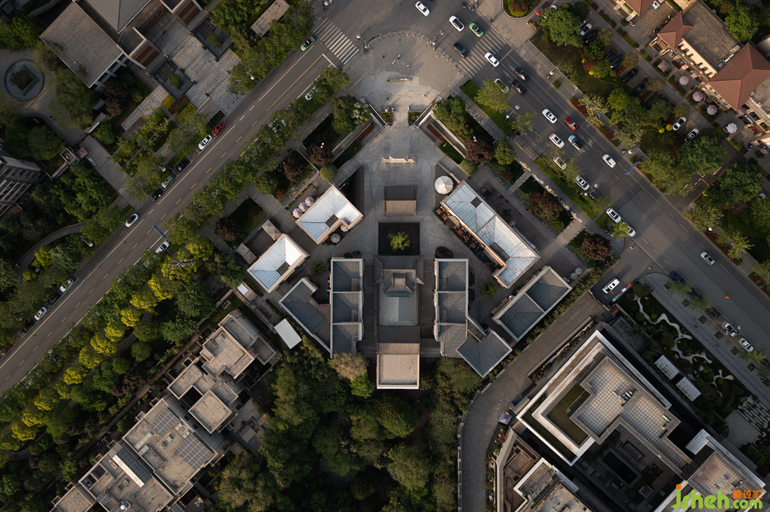 火锅店设计建筑充分考虑了与周围场地的融合与并置,以几何块体与现代建筑简洁的节奏相连接,只留有轴心部分饰以尖顶飞檐,以此向西安文化古都的历史文脉中心致敬。火锅店设计师不局限于别墅的象征,布局整齐,去浮夸矫饰,屋顶以“凹”来代替“凸”,表现出谦逊的意味。