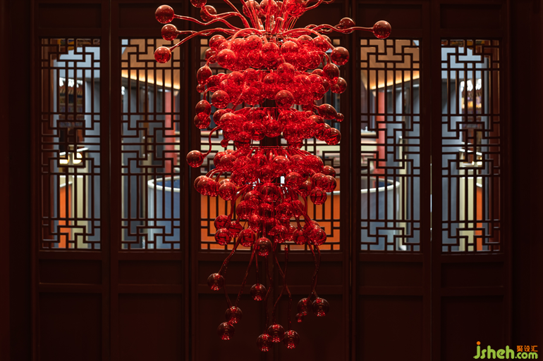吊灯以当代艺术的姿态,冲破了传统的束缚,融入传统。火锅店设计空间用色彩诉诸着情感,用几何控制着理性,摆脱历史的复杂性,与自然、古典、中式对话。