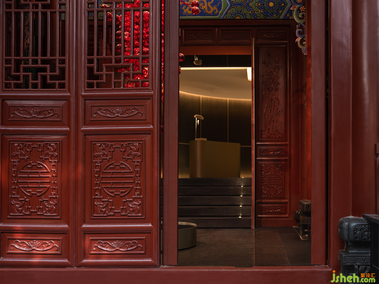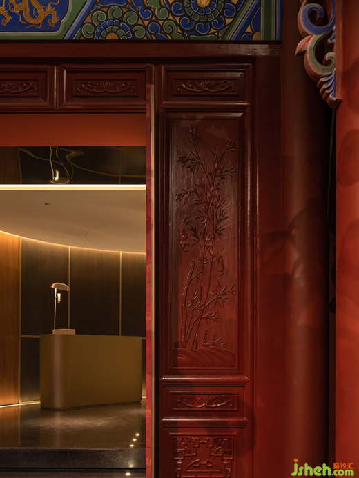 黄铜和深灰色的石砖地板在两种相互强烈碰撞的色彩之间取得了平衡,而石材的粗粝和拙朴也平衡了雕花纹饰的柔雅。空间中不仅散发着精致、高贵的历史文脉,更能感受到大自然的活力。
