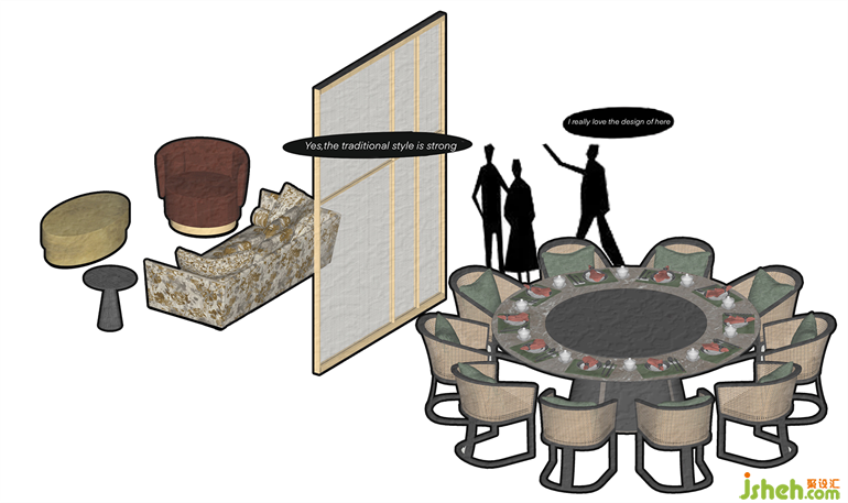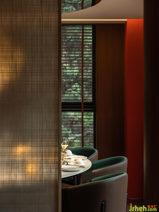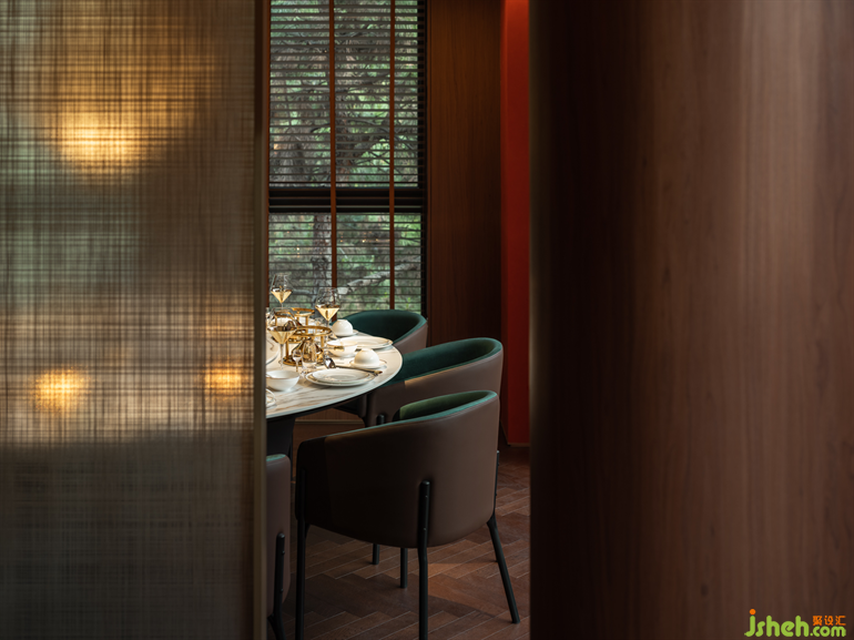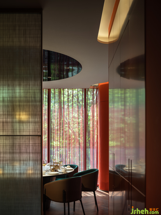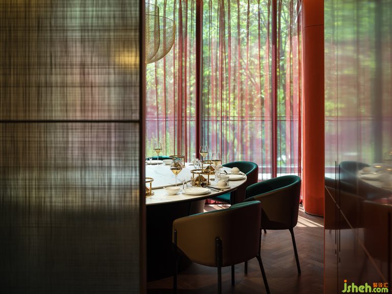 包厢延续了新古典浪漫主义,厚重的隔断与纱帐,带来梦里看花的朦胧美感。火锅店设计师以材料、色彩、器物、艺术等诸多方面入手,为现场营造出精致、优雅、奢华的氛围感。