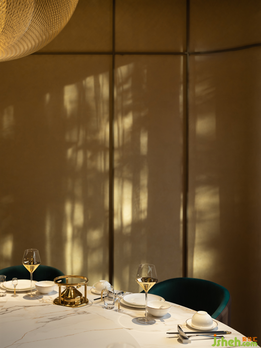 推杯换盏间,觥筹交错。阳光掠过树影,触碰到墙上破碎的金斑,与黄铜器皿、枝形吊灯形成虚与实的两面,火锅店设计塑造出不同维度的独特奢华。