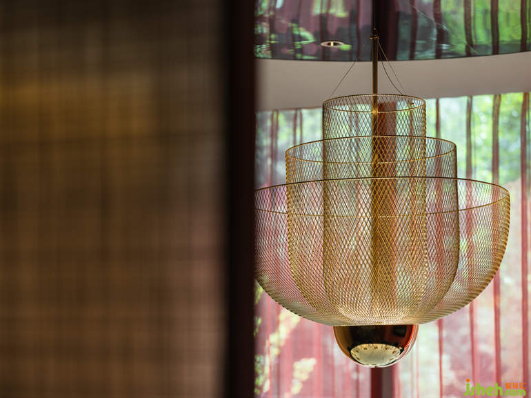 金属丝网薄而柔韧,不同尺寸的圆柱型网格带来精致的古典意味。枝形吊灯游走在确定与不确定的边界之间,从规则、秩序和变化中产生独特的美,同时被交织的网格笼罩在梦幻之中。
