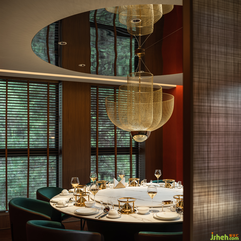火锅店设计师以镜为媒介,圆为形状,在带来美学融合的同时,将低调奢华的气质注入到现场。空间在这里唤起的不仅仅是视觉感官的享受,更是对现代生活哲学的重新诠释。