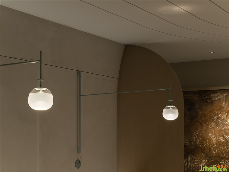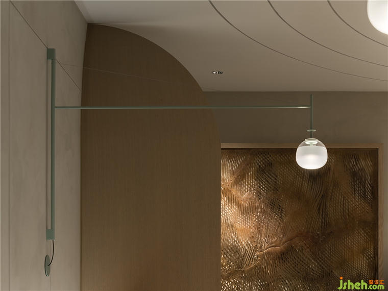 非线性的天花板设计提供了独特的视觉体验,采用东方美学强调了留白,优美的曲线流畅地铺开,创造出一个流动而平衡的空间,展现生命和运动之美。
