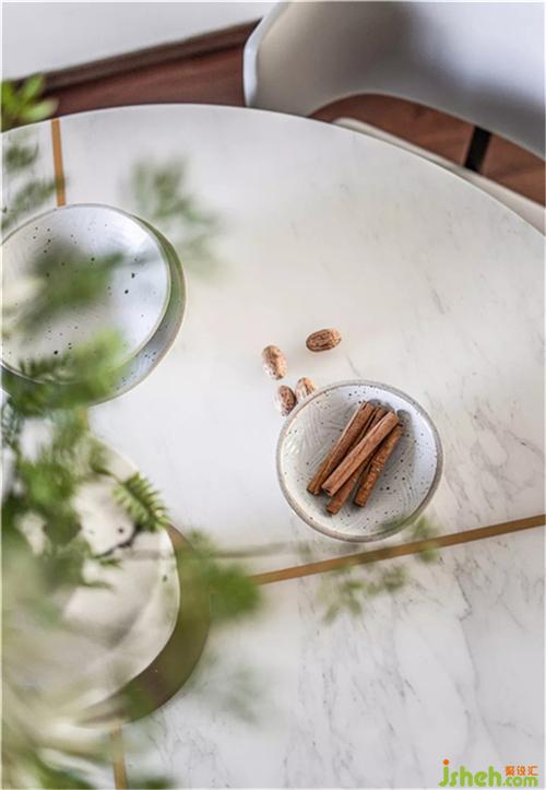 不同的功能空间,展现的形式和意蕴皆不相同。项目靠近老山国家森林公园,森林的秀美清新、大地的厚重深沉和流水的灵动活泼都予以设计师灵感。在亮堂的餐厅中,冰川绿和大理石白结合,重现大自然的风光。室内设计师