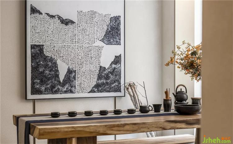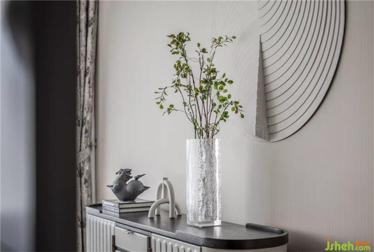 借助设计,不同的理想生活被融汇共生,多样化的生活方式在不同空间呈现。而在该空间中,水墨趣味和精致物件则带来东方写意美,设计师摆脱沉闷的配色,用素净打造空间的通透与朦胧。