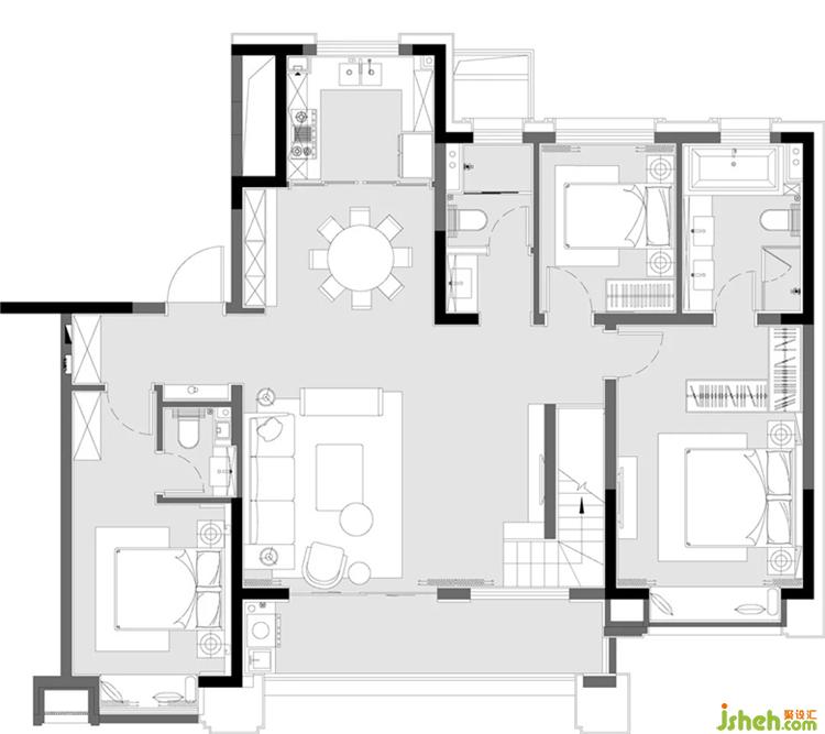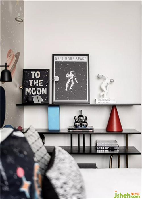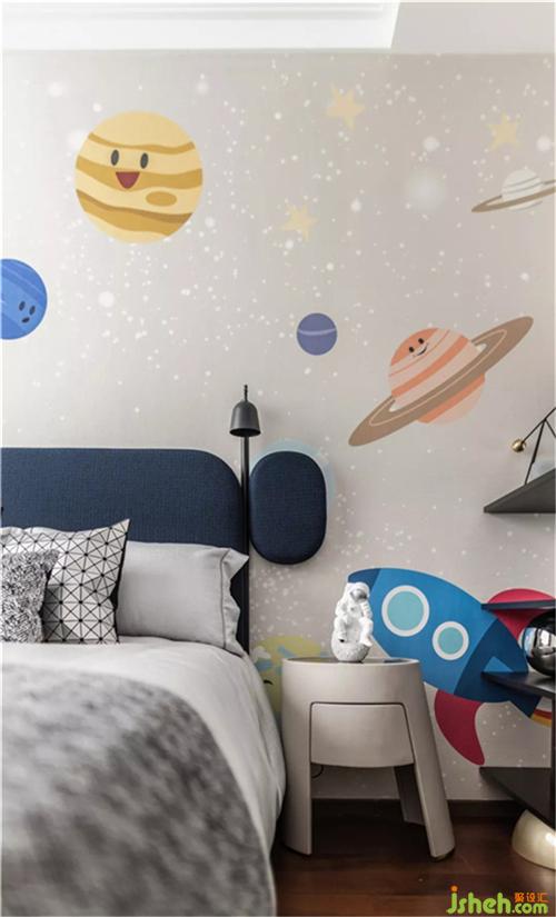 孩童的脑洞无限大,大到超出宇宙外。因此我们将儿童房设定为外太空主题,尊重孩童的想象力、创造力,让他们真实地做自己。样板房设计
