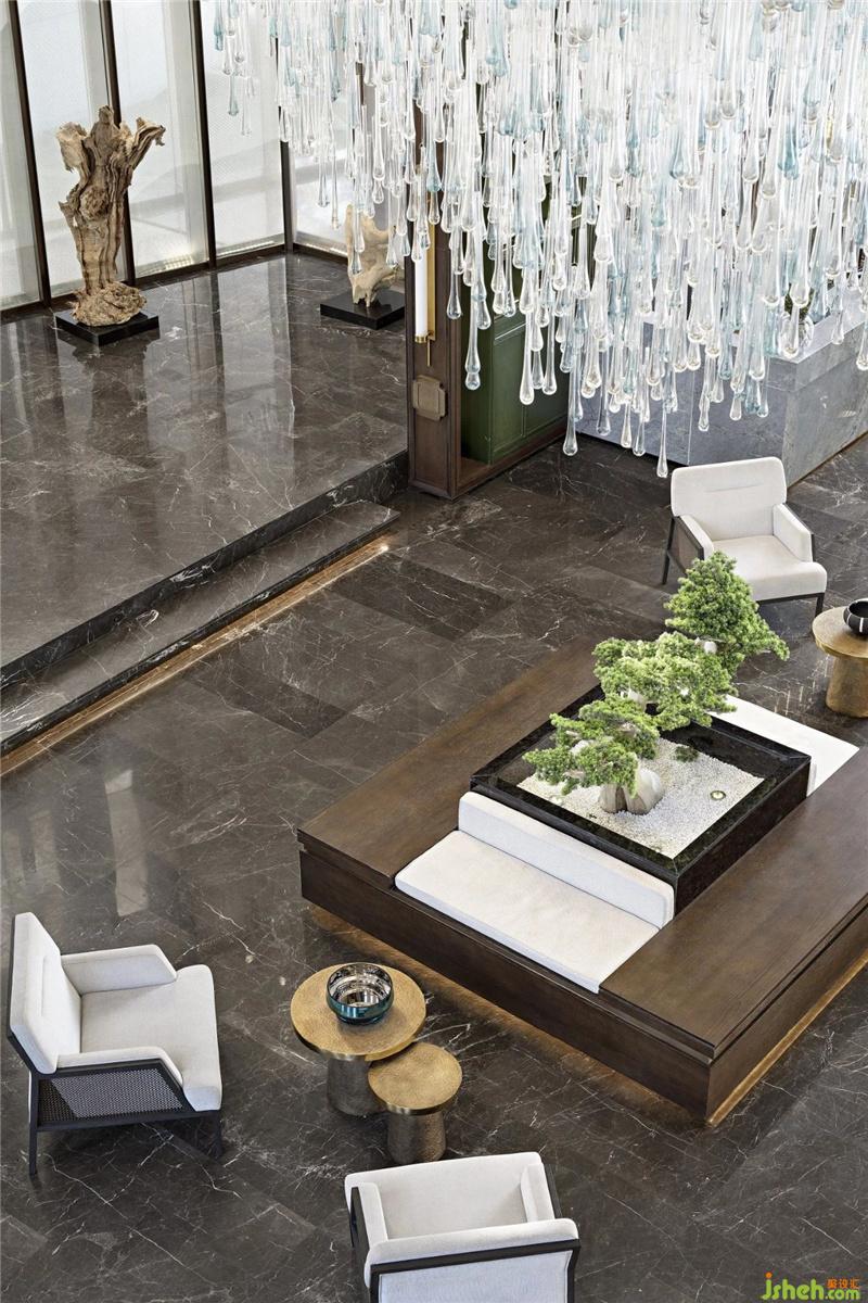 深圳售楼处设计大理石漆黑如夜,又如平静的湖水,将一切倒影收入,虚幻与真实相对而立,有时界限分明,有时融为一体,让人迷惑。