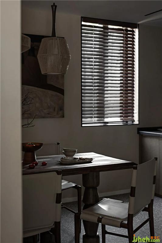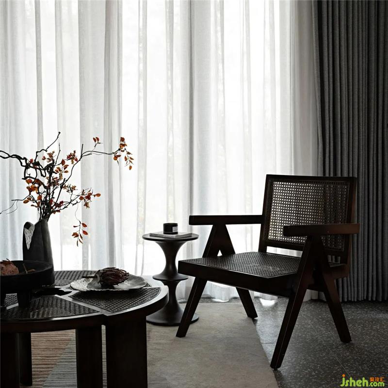 客厅摒弃浮华的设计,衍脉自深厚邈远的传统文化,从家具的形制、流线、色泽,到墨枝斜逸,均镌刻着东方诗性的肌理,流露出自信大方的悠悠风骨。