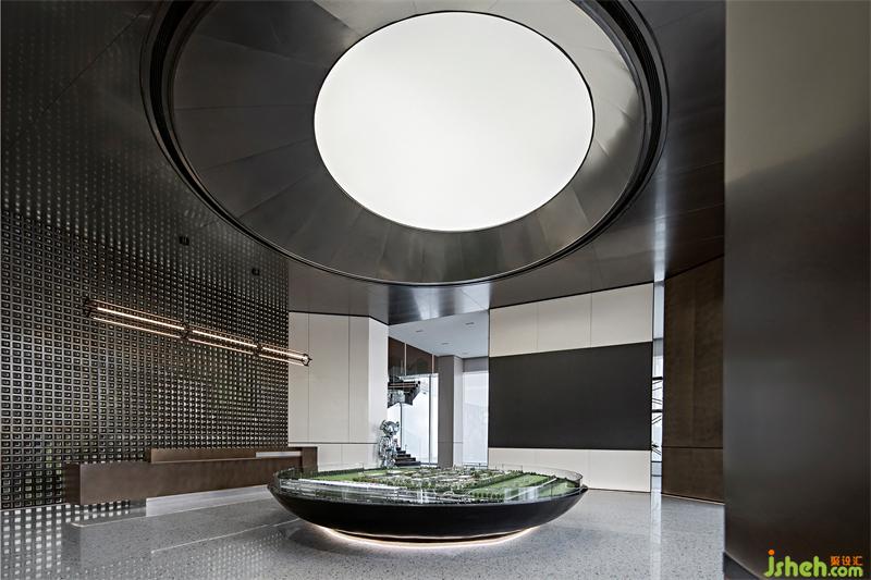 营销中心设计以追求刚需功能和感性的氛围处理作为设计基础,整体空间描绘着一场太空的探索。天花造型提取太空元素作为原型,增加空间有趣的视觉角度。