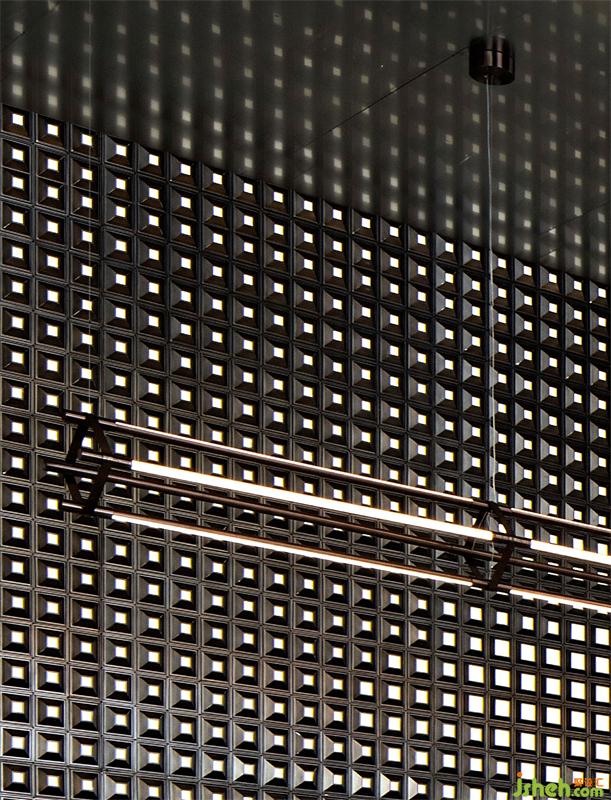 充满艺术气息的吊灯,现代工艺对金属材质的雕琢,与银幕相叠加呈现视觉效果。