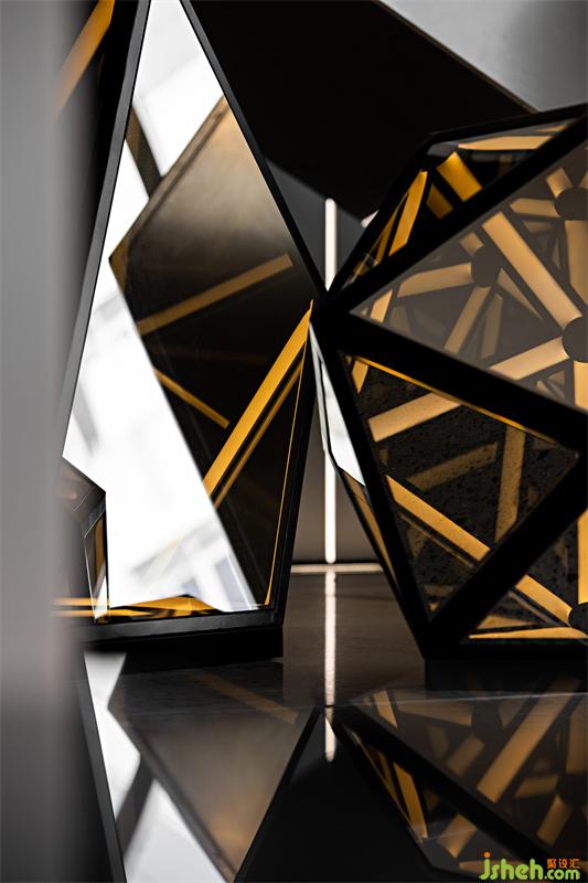 营销中心设计对光影关系的探索,利用几何形体演变出艺术装置,追求极简效果。