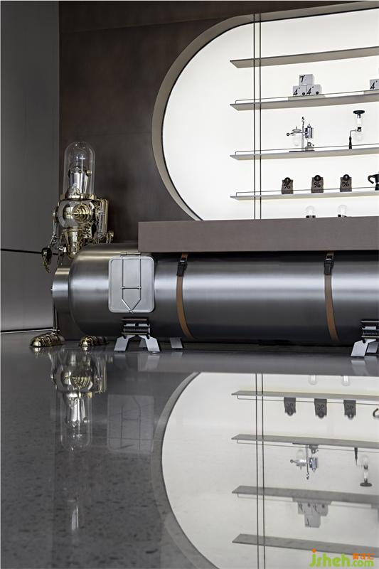 营销中心设计通过设计语言,将超现实、富有机械美感的艺术装置植入空间场景。