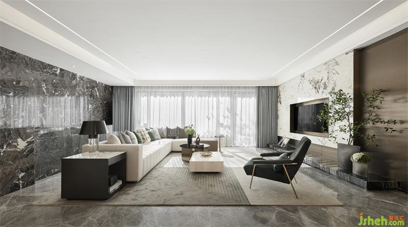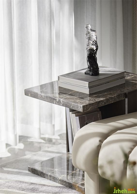 设计师将建筑元素的特性运用到起居室场景之中,强调建筑元素艺术品与空间结合所带来的新的场所精神。