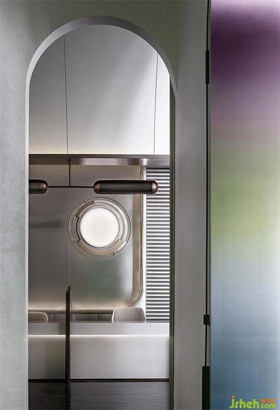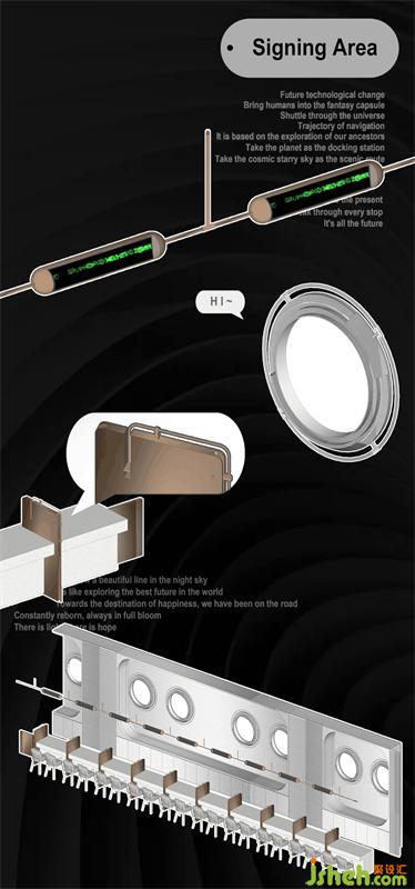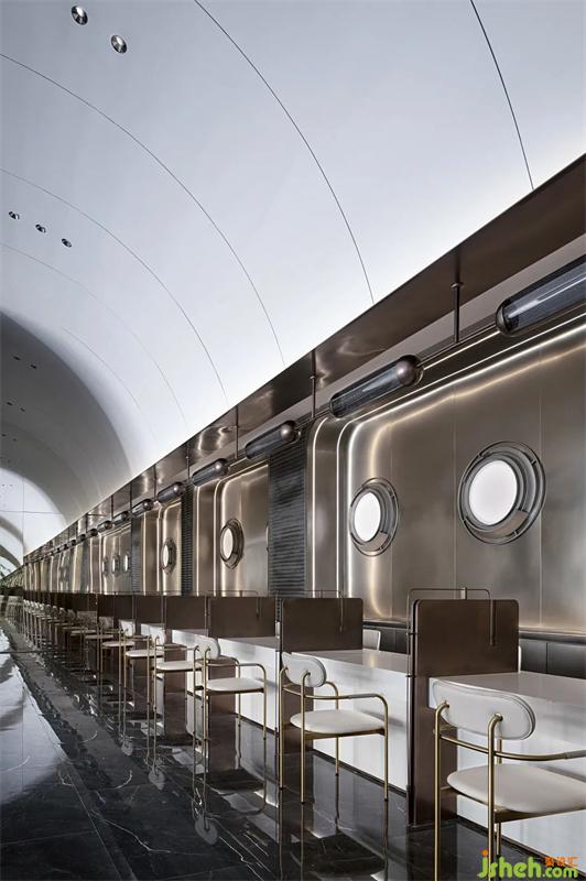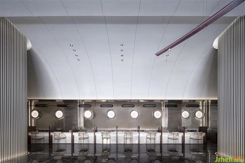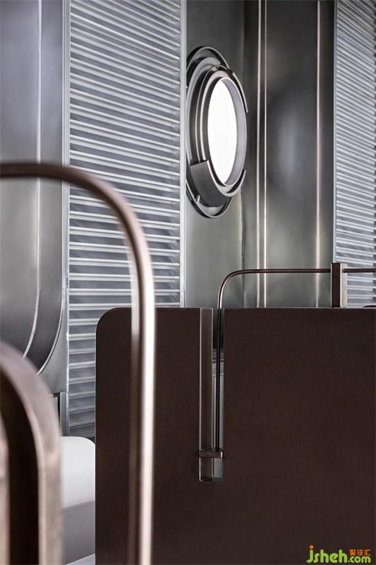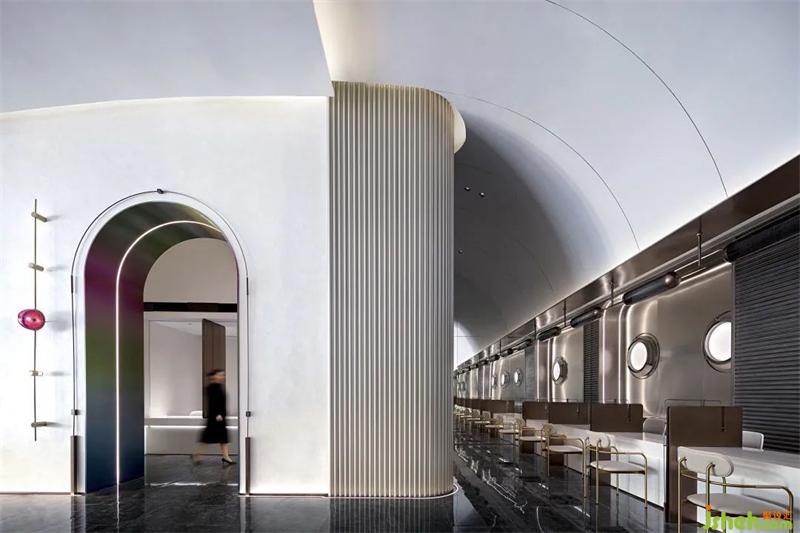空间所引导的行为和体验,较之前场区域形成了某种情感上的递进,而这一部分,由通过金属材质的对比、圆形尺度的掌控,抽象的星际专列由此予以实现。